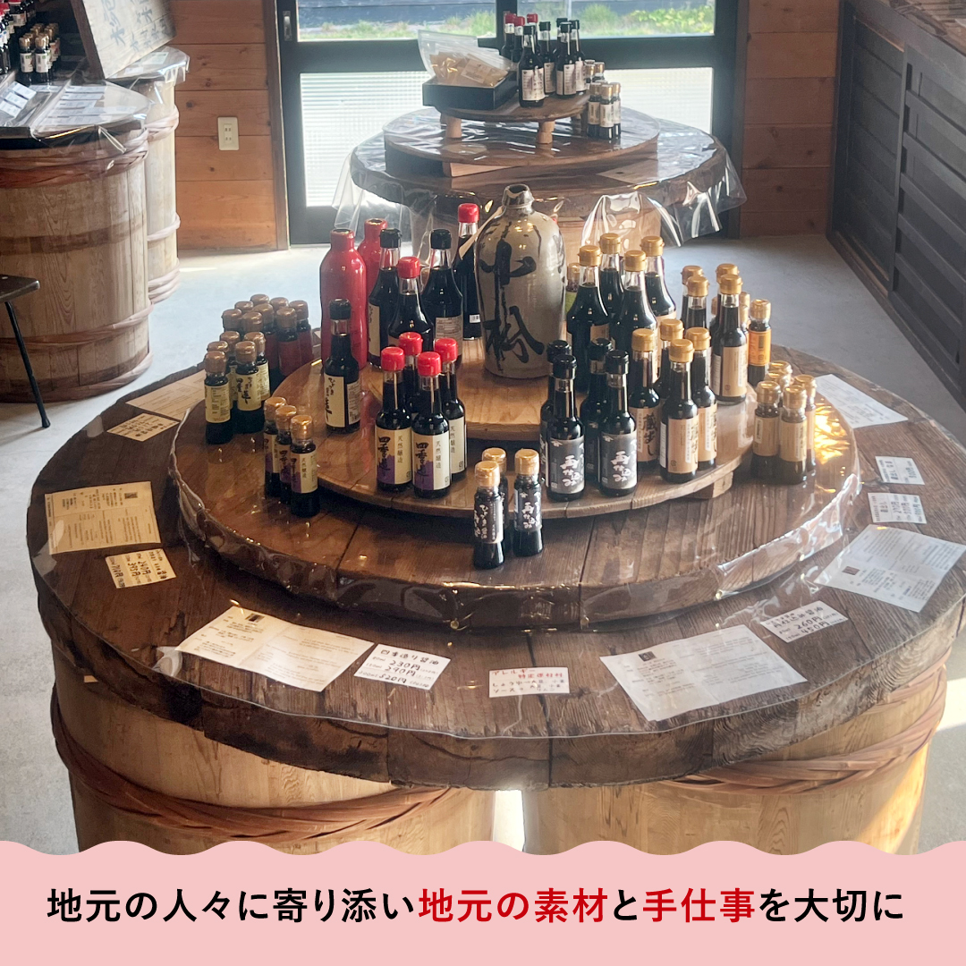 大豆も小麦も、自社農園で無農薬・無化学肥料にこだわって育てています。「地元の人々に寄り添い地元の素材と手仕事で醤油をつくる」という姿勢を大切に、守り続けているそうです。