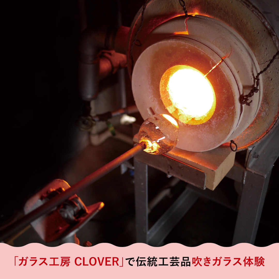 浜名湖からほど近い「ガラス工房 CLOVER」では、自らの手で形作ることができる吹きガラスの体験ができます。普段は目にするだけの器も、自分でつくることで素材の奥深さやものづくりの楽しさを実感でき、日常から少し離れた贅沢な体験が味わえます。