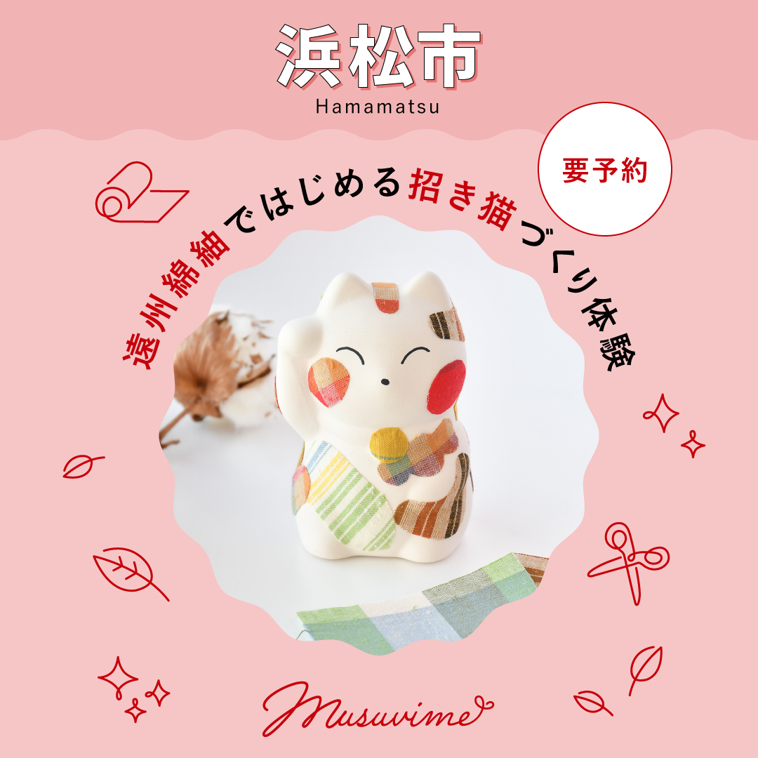 【浜松市】遠州綿紬(えんしゅうめんつむぎ)ではじめる世界にひとつの招き猫づくり体験