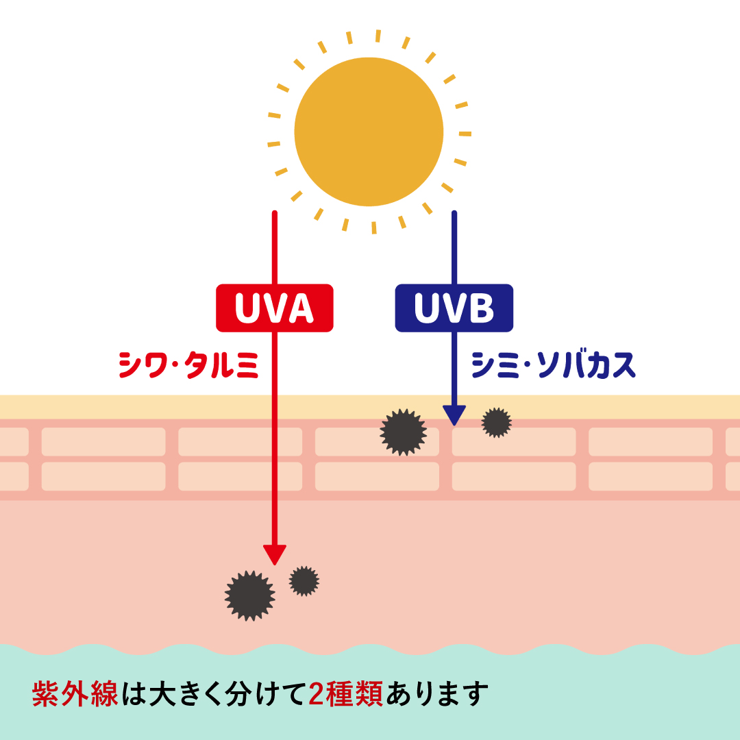 - 地表に届く紫外線の約9割を占め、窓ガラスや雲も通過して真皮まで届きます
