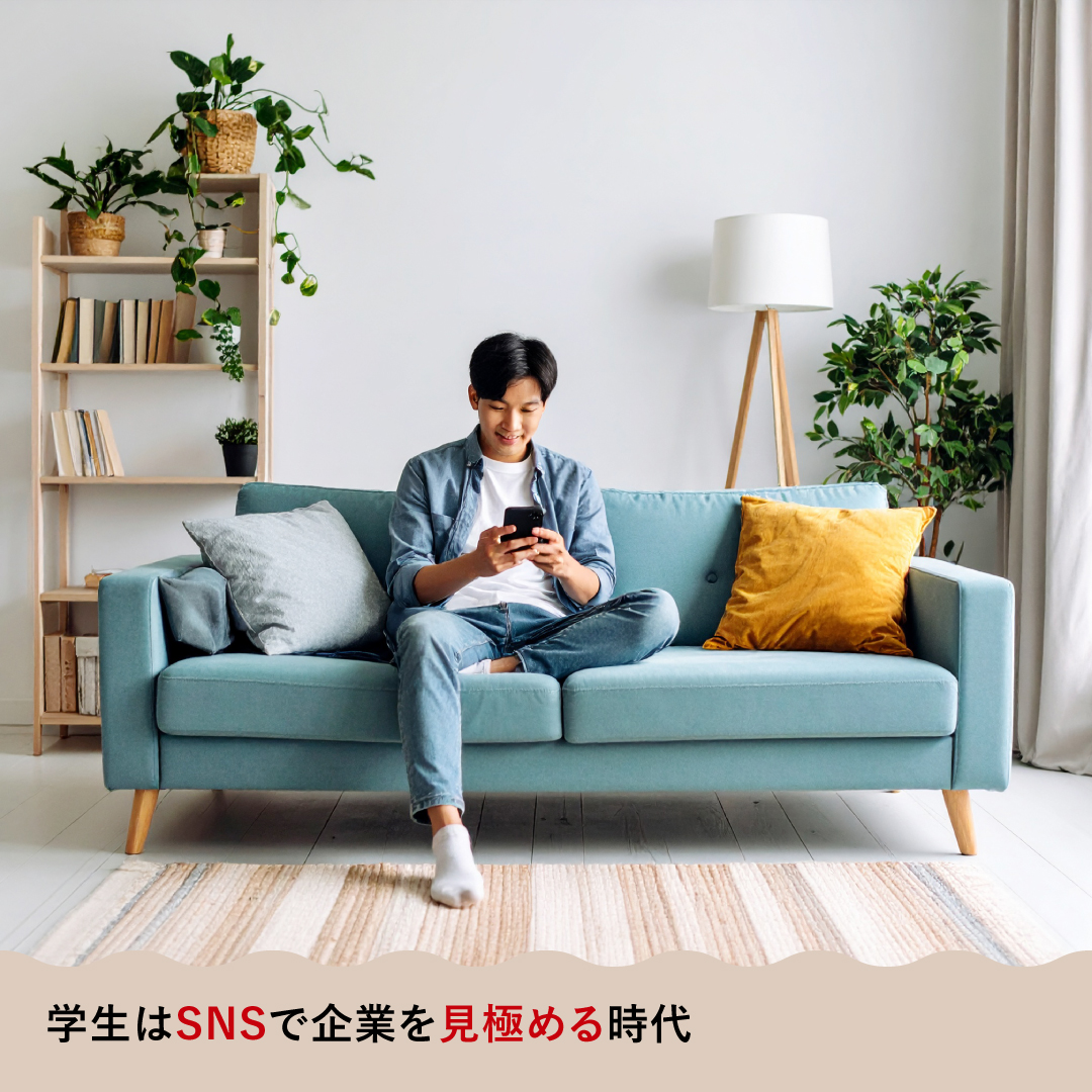 採用市場では、エントリー数の減少が大きな課題となっています。今の学生は「数多く受ける」のではなく、「自分が本当に行きたい企業だけを選ぶ」傾向が強まっています。 その際に参考にされているのが、企業の公式HPだけではなく、SNSです。 社員の雰囲気、会社の価値観、働く人の想いなど、HPだけでは伝えきれない要素をSNSから感じ取り、「この会社は自分に合いそうか」を判断しているのです。