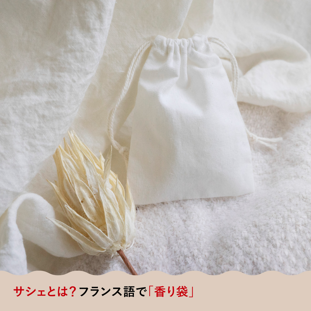サシェはフランス語で「香り袋」。部屋に置いたり、衣装ボックスに入れたりして香りを楽しみます。