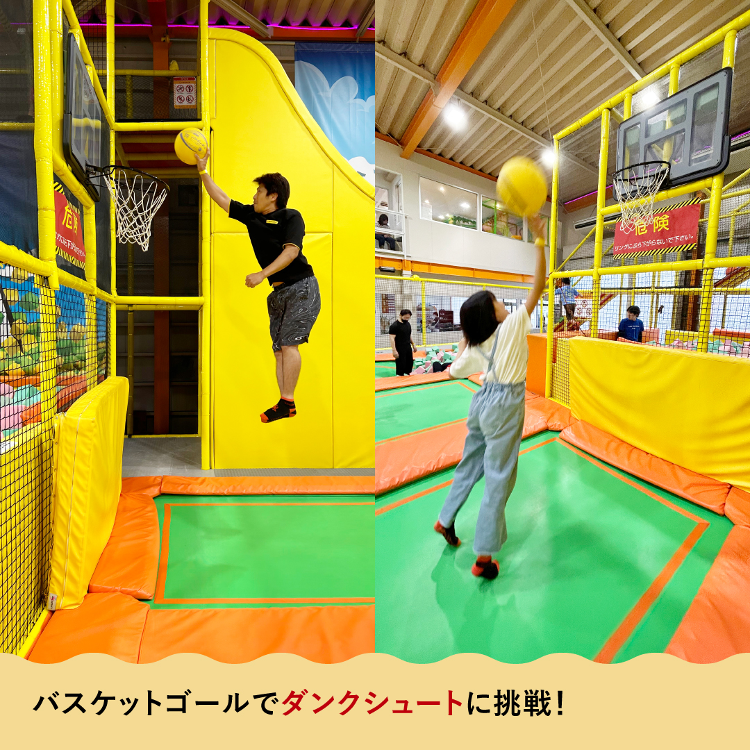 バスケットゴールも設置されていて、普段はできない憧れのダンクシュートに挑戦することもできます。