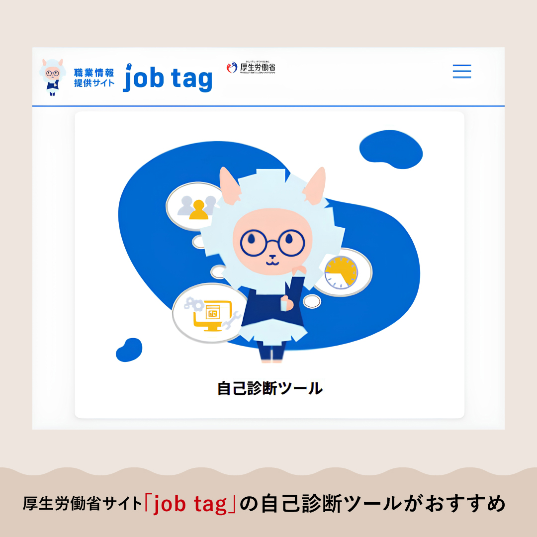 そんな時におすすめなのが、厚生労働省のサイト「job tag」にある自己診断ツールです。