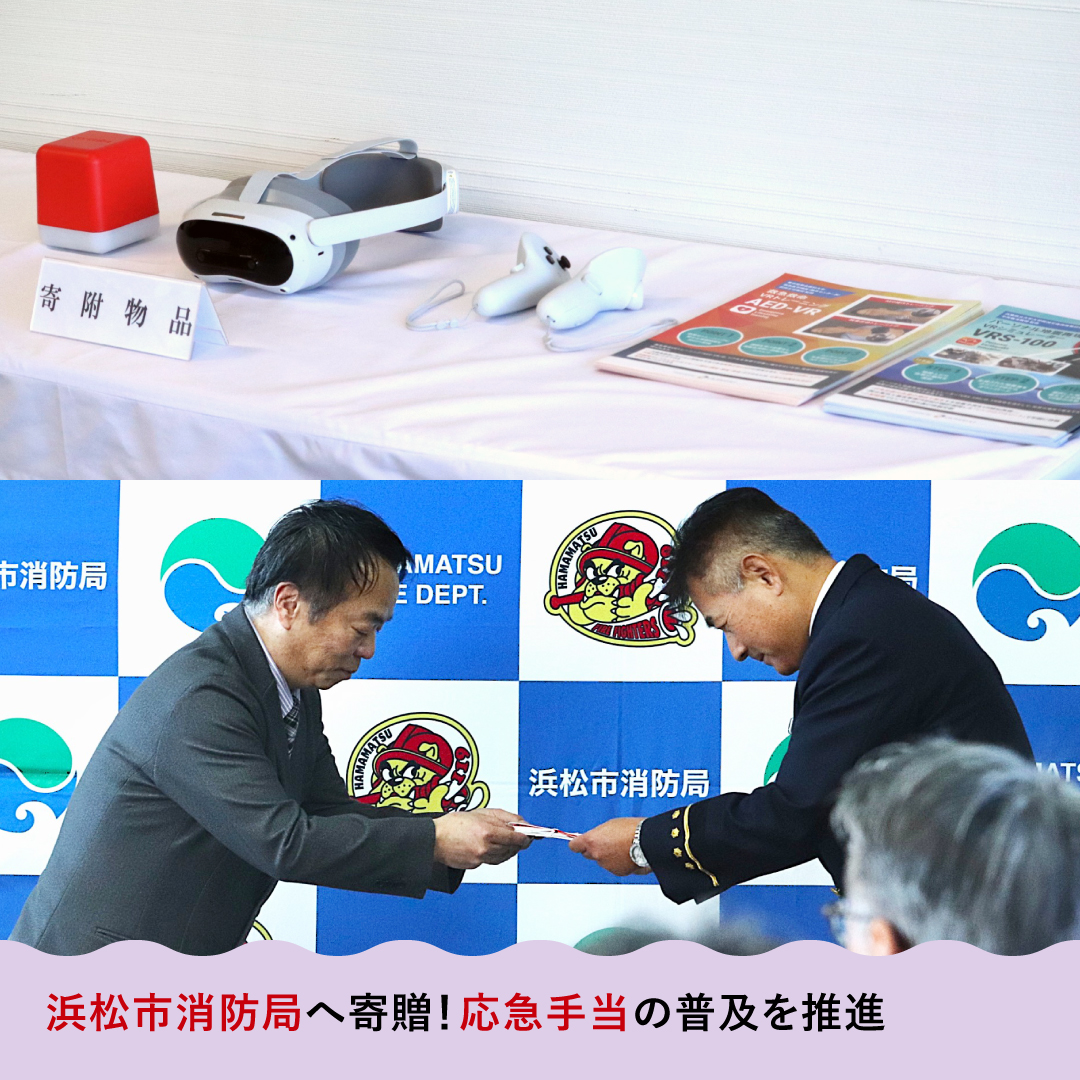 株式会社クロスデバイス(浜松市中央区、代表取締役 早川達典)は12月16日、応急手当普及事業推進の一環として、浜松市消防局にVR技術を活用し心肺蘇生法やAEDの使用方法を仮想空間で体験・学習できる救命訓練システム「AED-VR」を寄贈いたしました。