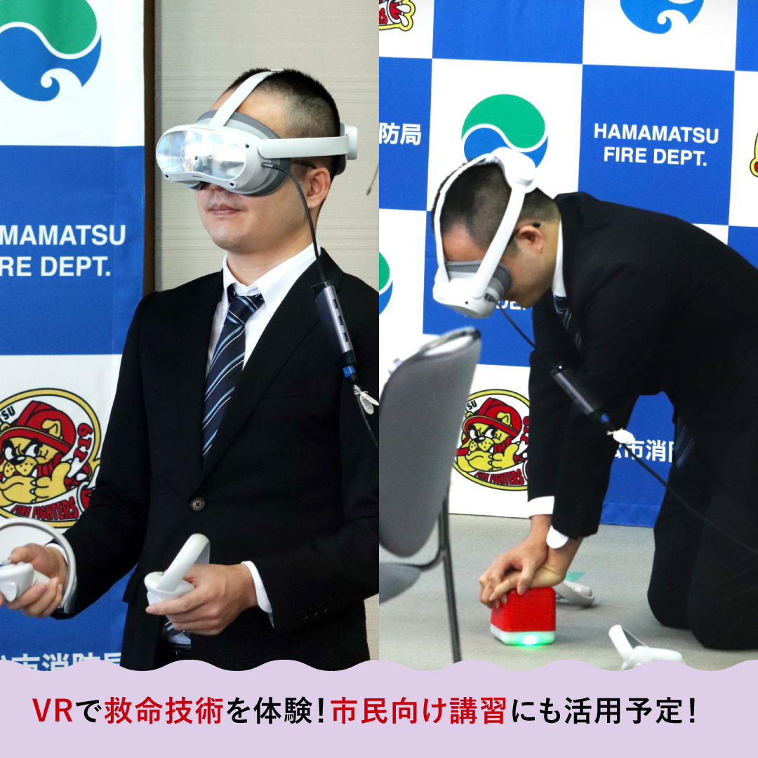 「浜松市消防局では、今後、市民の皆様に救命講習における心肺蘇生法やAEDの使用方法をVR空間で体験していただき、必要な知識や技術を効果的に習得できるよう、本システムを活用してまいります。」