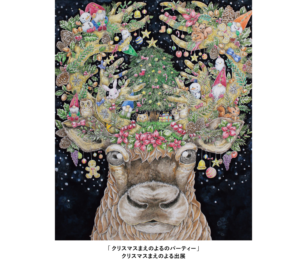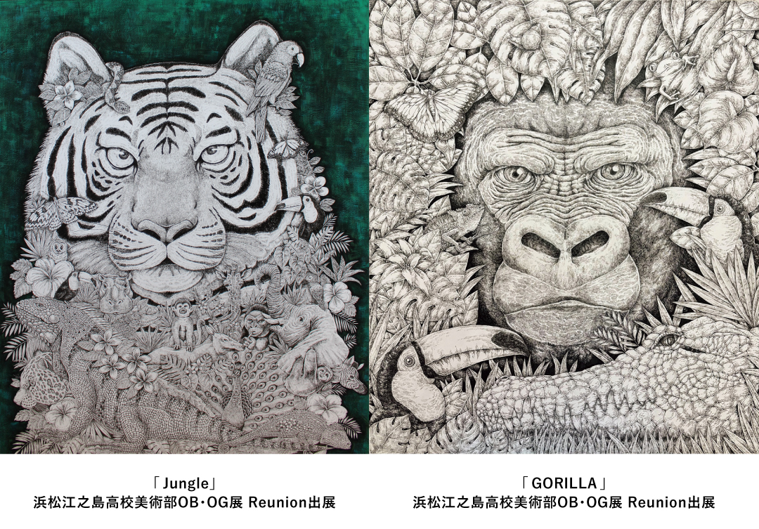 私の絵の特徴は、ペンで細かく描き込まれた個性的な生き物たちです。元々細かい作業が好きで、いつも時間はかかりますが一点一点コツコツ描き込んで作品を仕上げています。絵の中には大きく描かれた生き物以外にも他の動物が隠れていたり、生き物たちがお互い干渉しあって不思議な空間を作り出しています。大人でも子供でもどなたでも、それらを発見して楽しめる作品となっています。私の作品を見る機会がありましたら、是非じっくり「細部まで見て楽しんで」下さい。作品と共にお待ちしています。