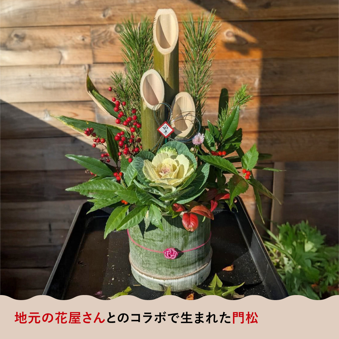 最近は、細い竹に小豆や米を入れてつくるマラカスづくりや、直径約20cmもの太い竹を花器がわりにした門松づくりのワークショップも行いました。地元の花屋さんとのコラボで生まれた門松は、参加者にも好評でした。